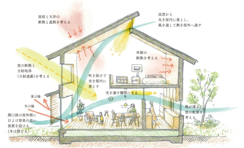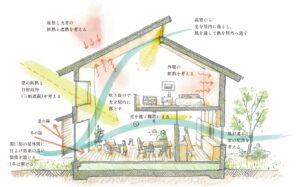 「パッシブデザイン」とは、太陽や風など自然エネルギーを活かす設計手法。