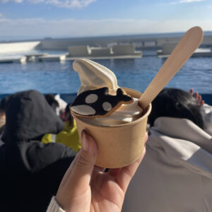 そしてイルカのショーを見ながらソフトクリームを食べたのですが、とても美味しかったです♡