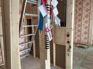 現場に遊びに来てくれたT様のお子様が、なんと壁や柱にかわいいイラストを描いてくれました!