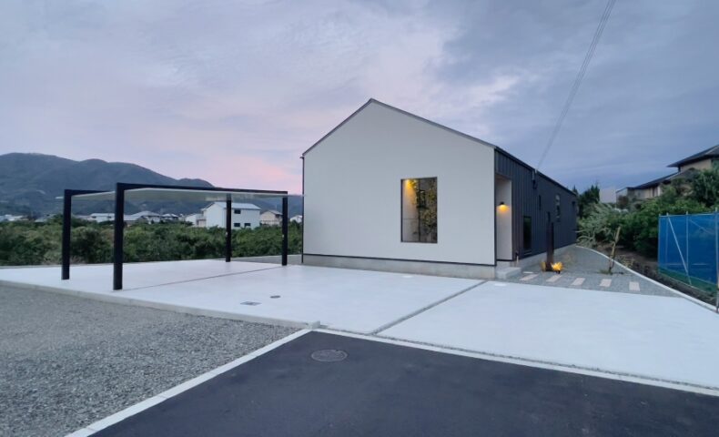 東西にゆったりと広がるミカン畑を望む敷地に建てられたこのお家は、光と景色、心の豊かさを大切にしたプランになっています。