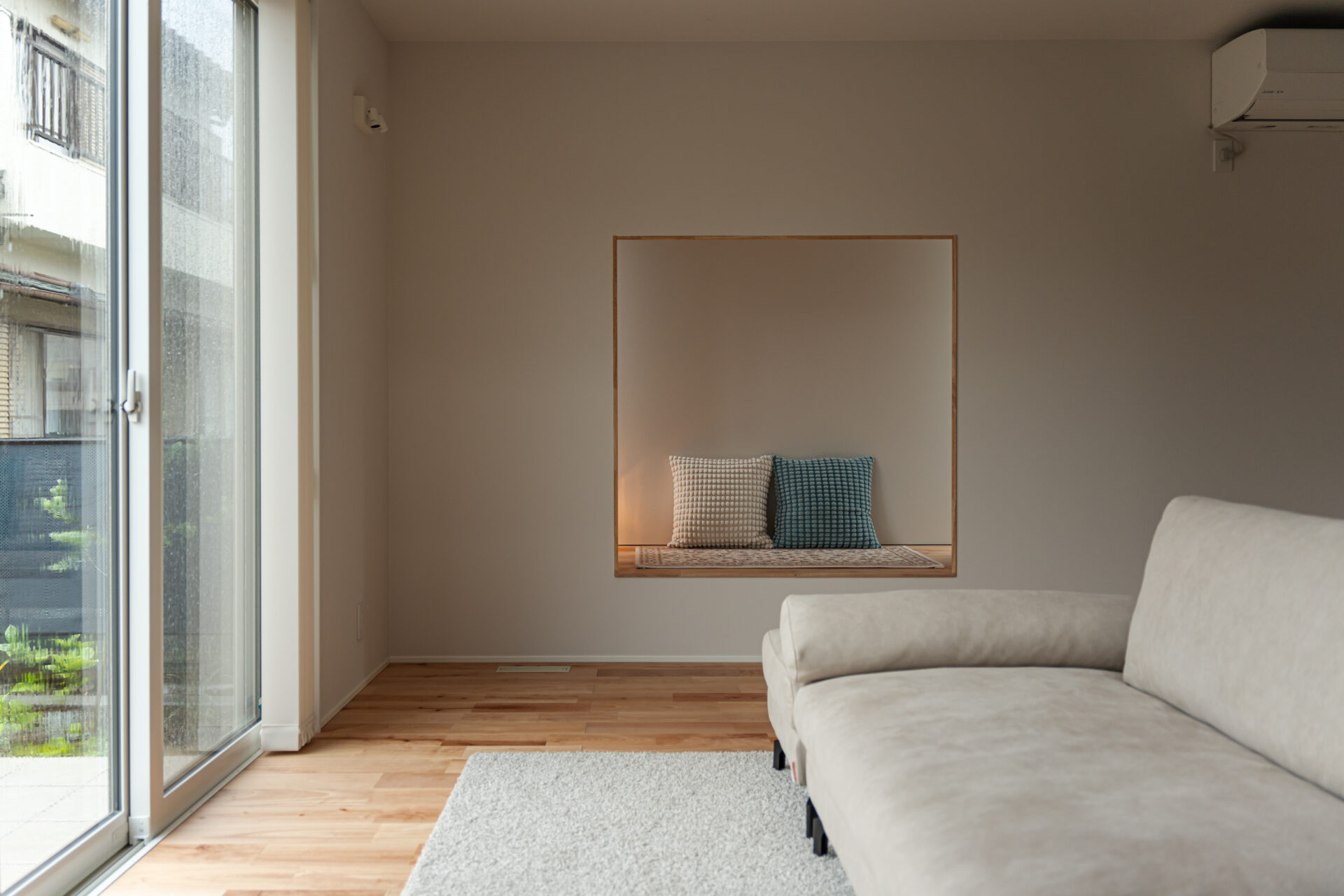 LDKの奥には特等席のヌック。LDKと一体で使用でき、寝転がったり読書をするなど籠ることもできる。