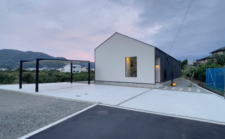 東西に長く周囲にミカン畑が広がる敷地。 敷地形状に素直に計画しました。
