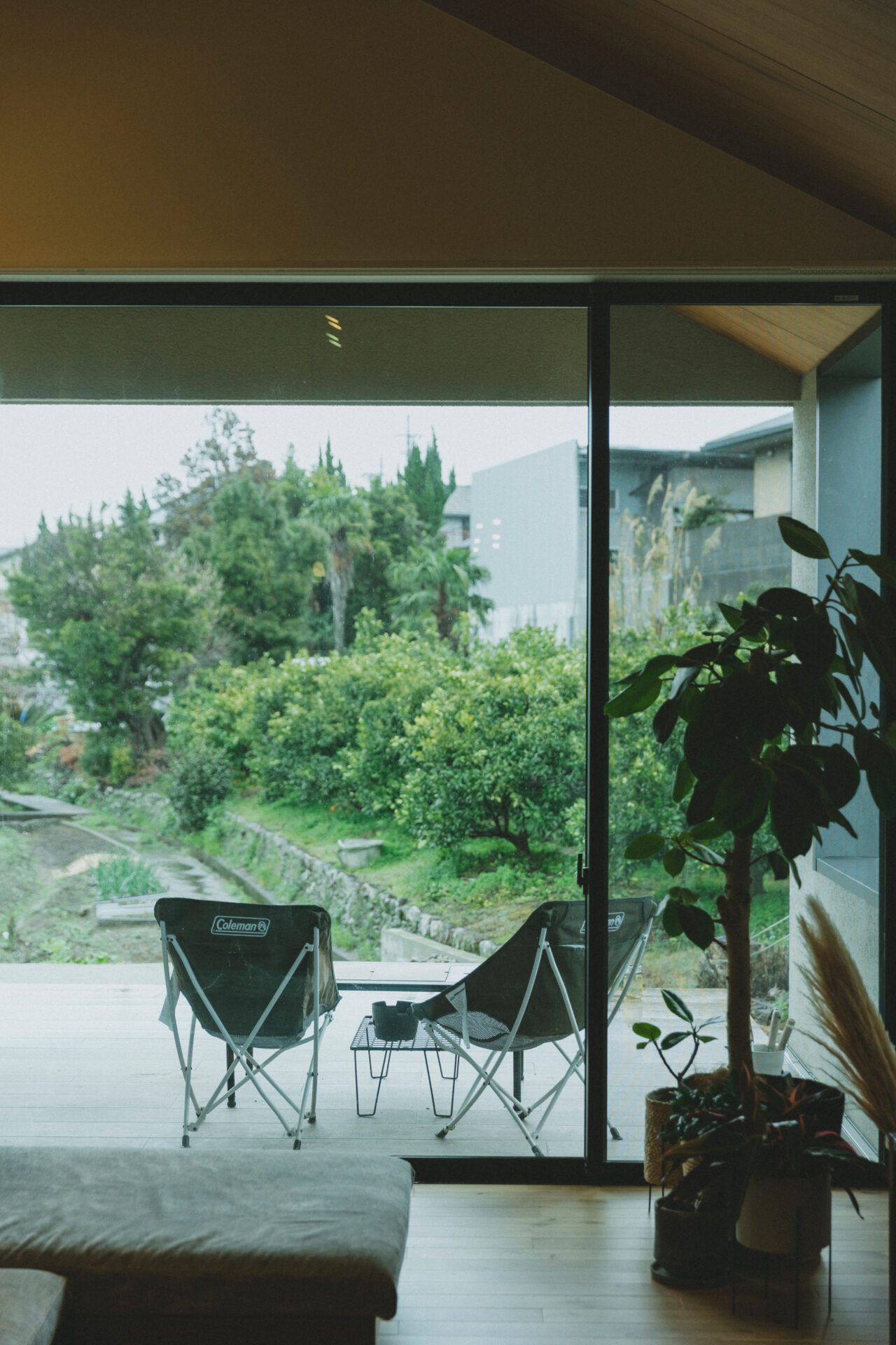大開口の外はアウトドアリビング。 屋根も掛かっているので屋内的にも使えます。